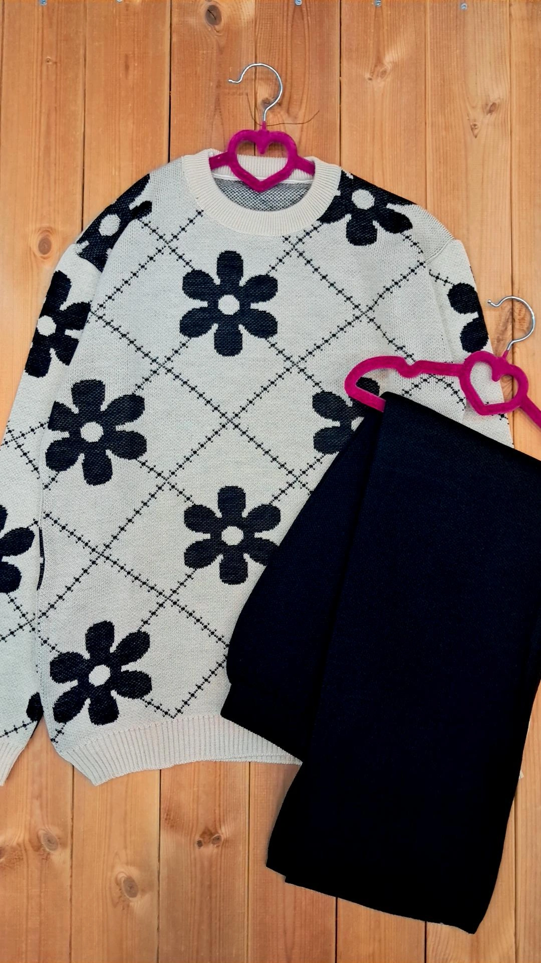 ست بلوز و شلوار بافت دخترانه طرح گل