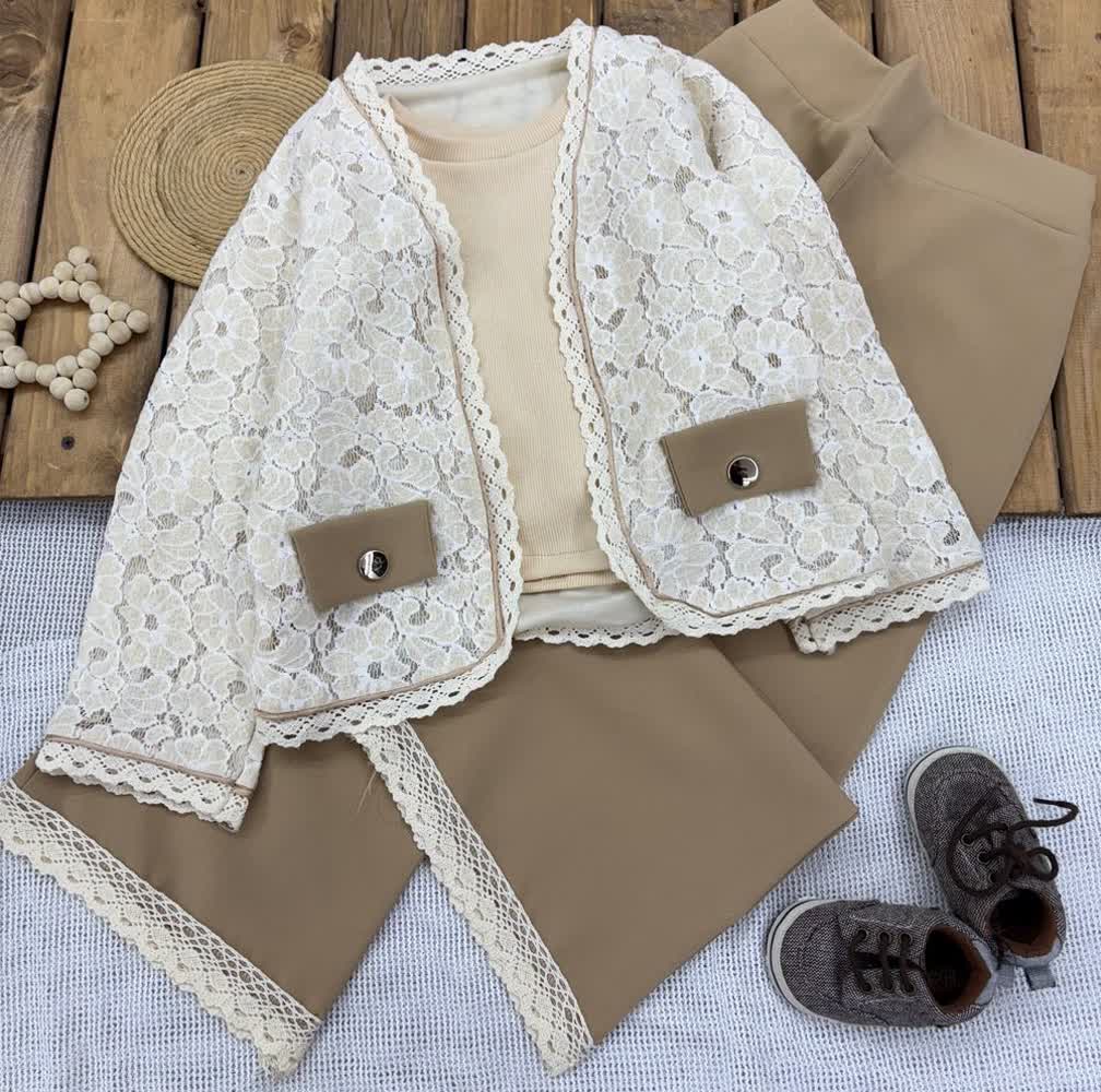 ست سه تیکه کت و شلوار گیپور مجلسی دخترانه