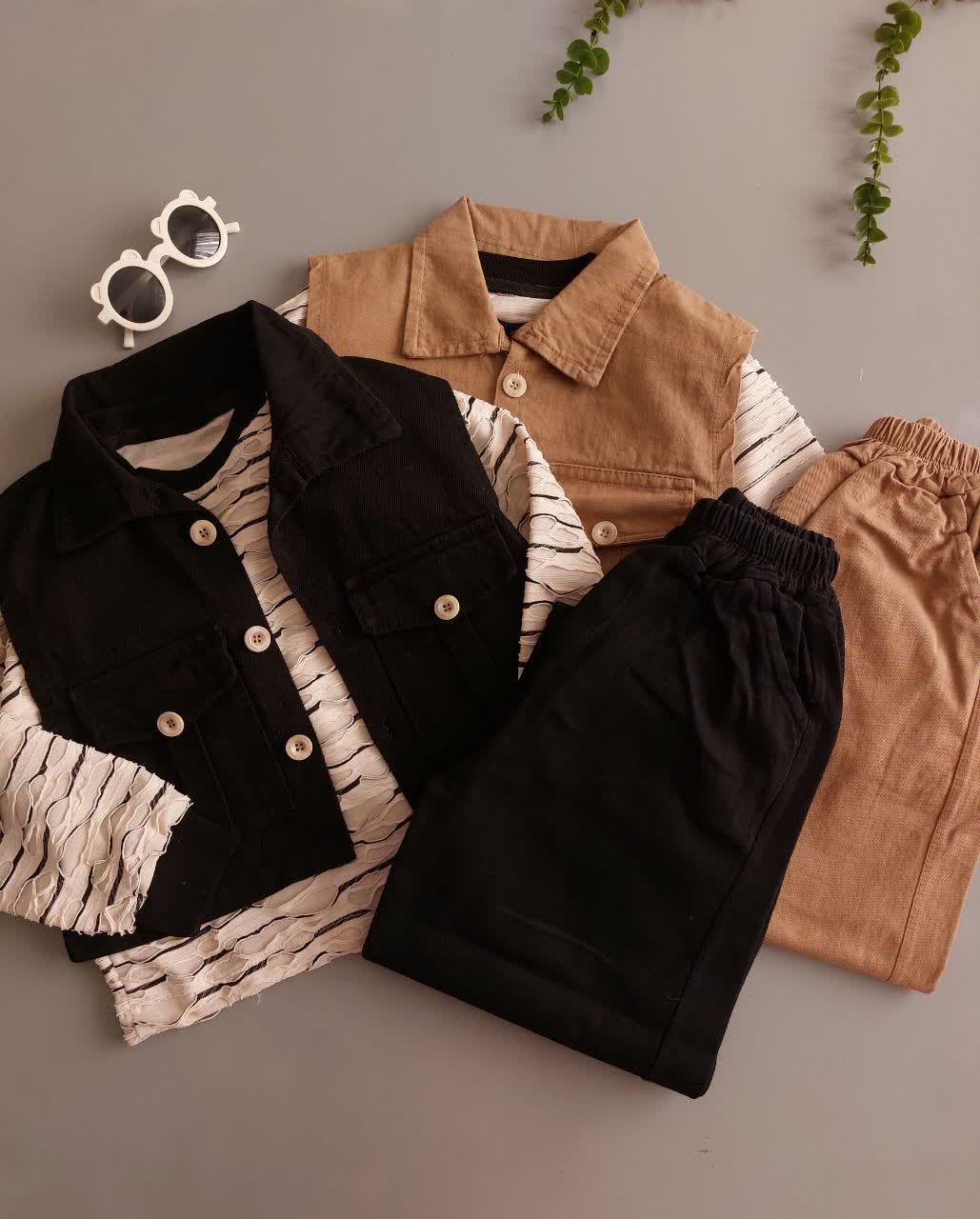 ست سه تیکه پسرانه رویه کتان و شلوار جین