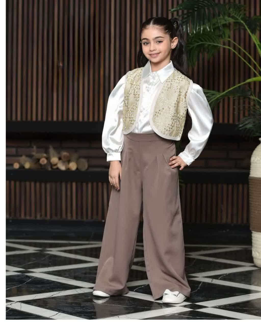 ست سه تیکه جلیقه و شومیز شلوار مازراتی دخترانه