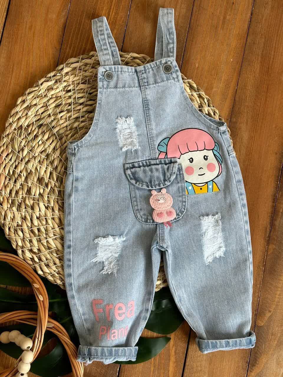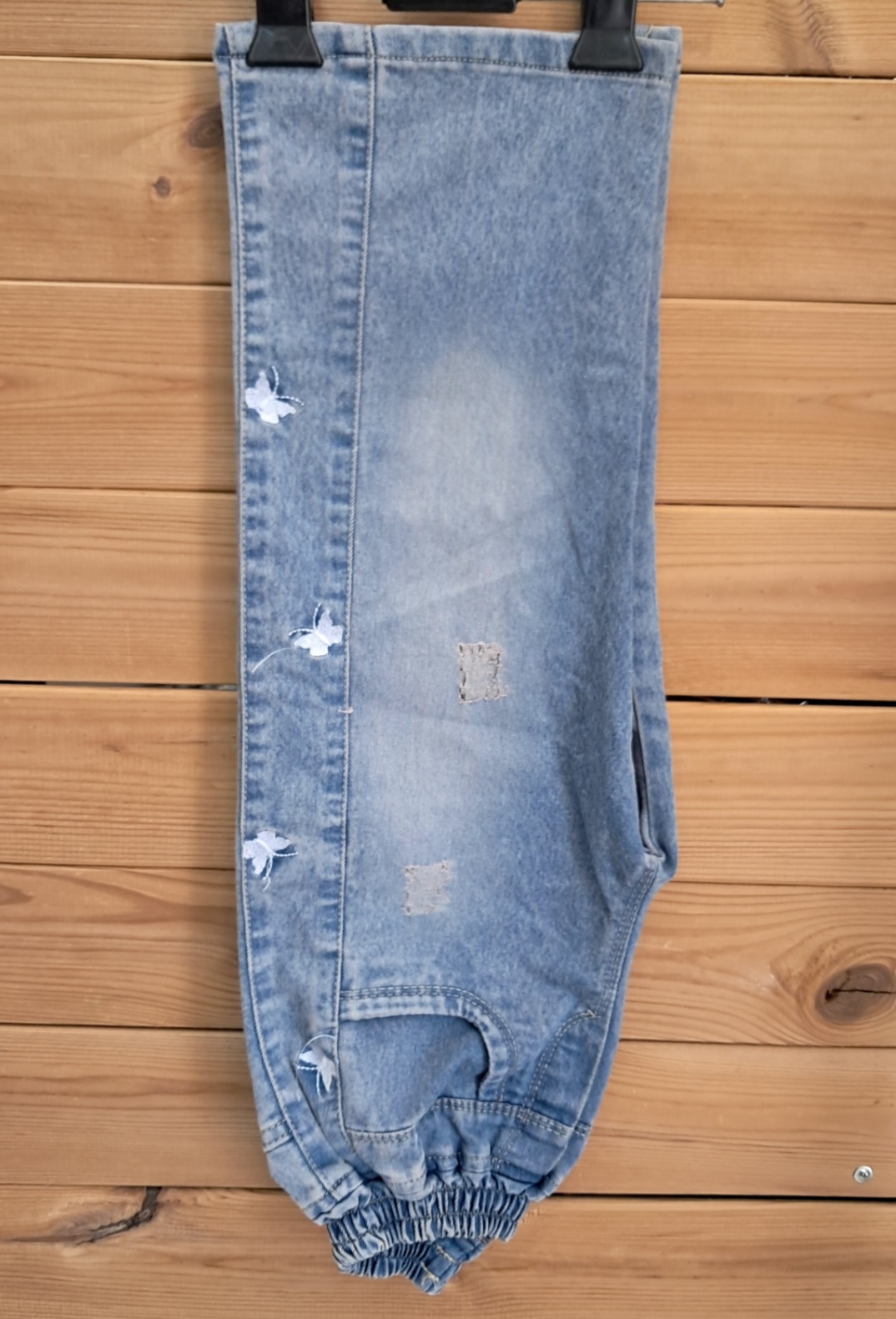 شلوار جین آبی شافل گلدوزی پروانه دخترانه