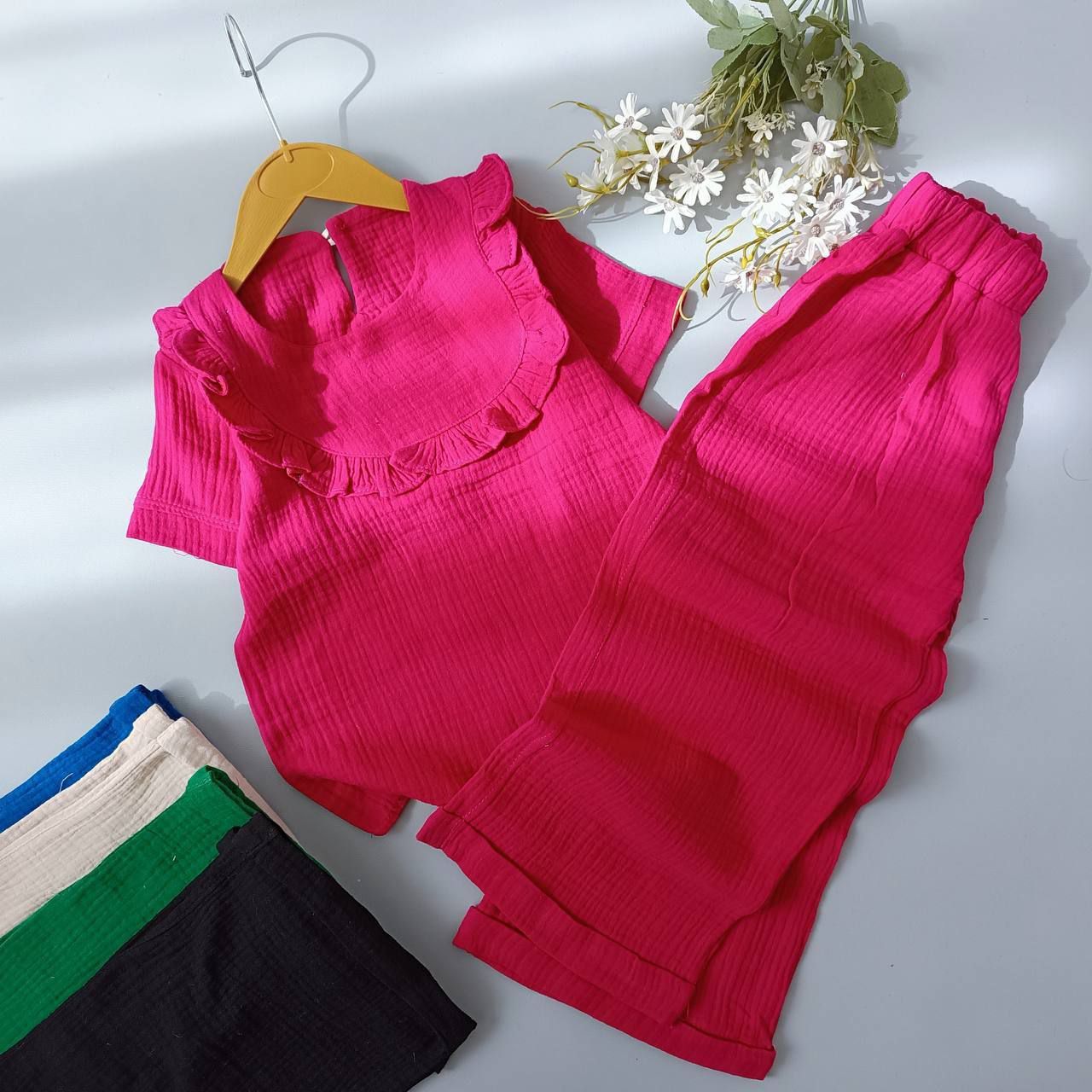 ست کراپ و شلوار پنبه دخترانه مدل بابونه