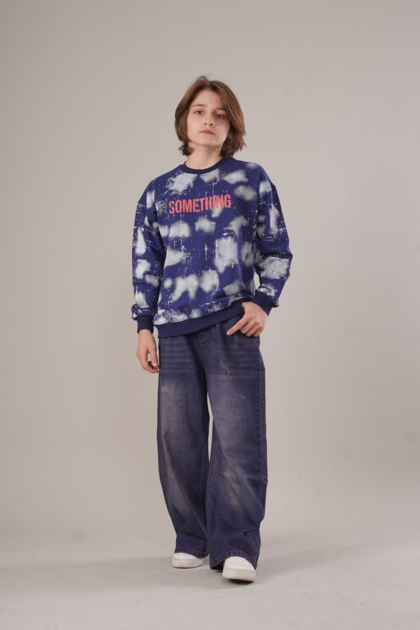 ست بلوز دورس دونخ و شلوار لی فول بگ پسرانه طرح کهکشان
