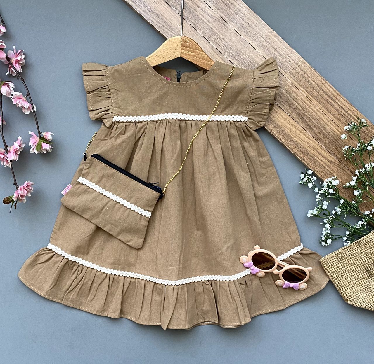 پیراهن کتان دخترانه همراه با کیف مدل عروسکی