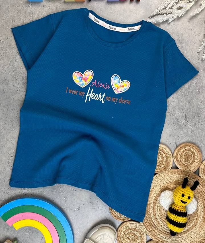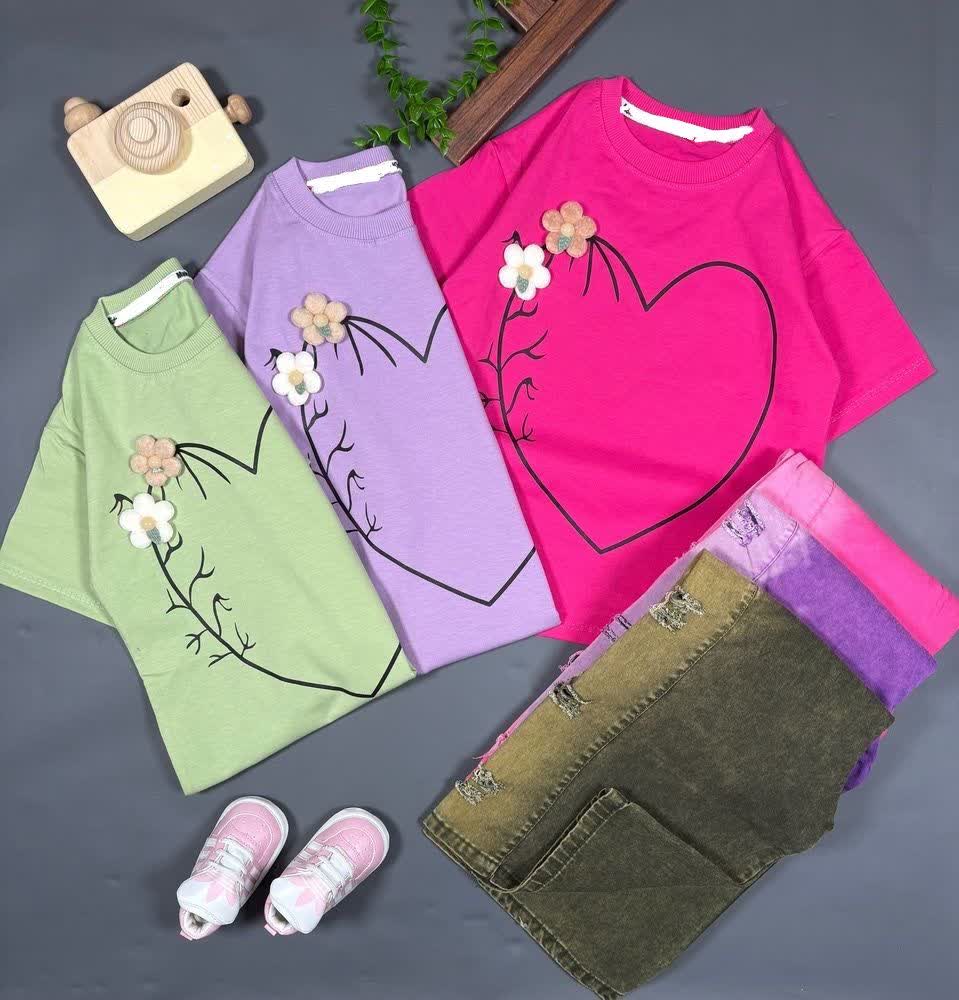 تیشرت تک راحتی اقتصادی پنبه فانریپ دخترانه مدل قلبی