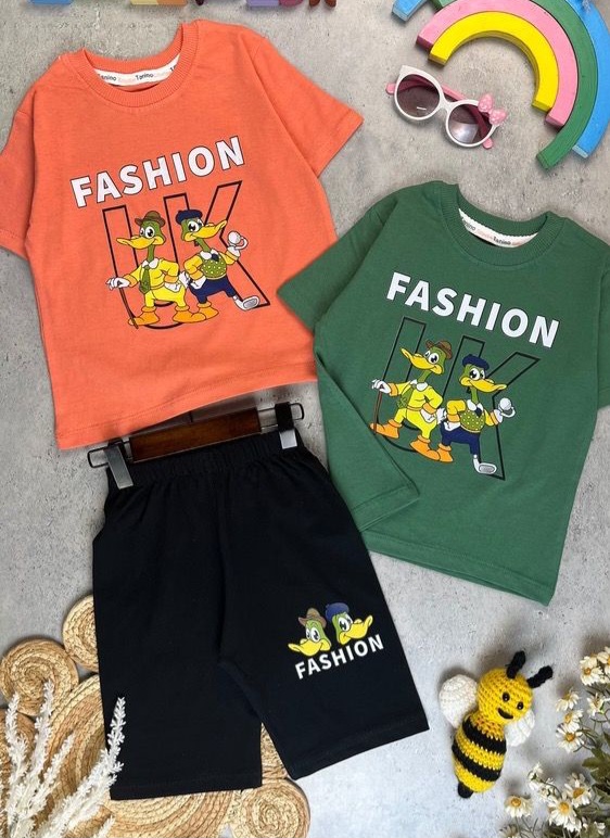 ست تیشرت و شلوارک راحتی اقتصادی پنبه یک رو پسرانه طرح اردک