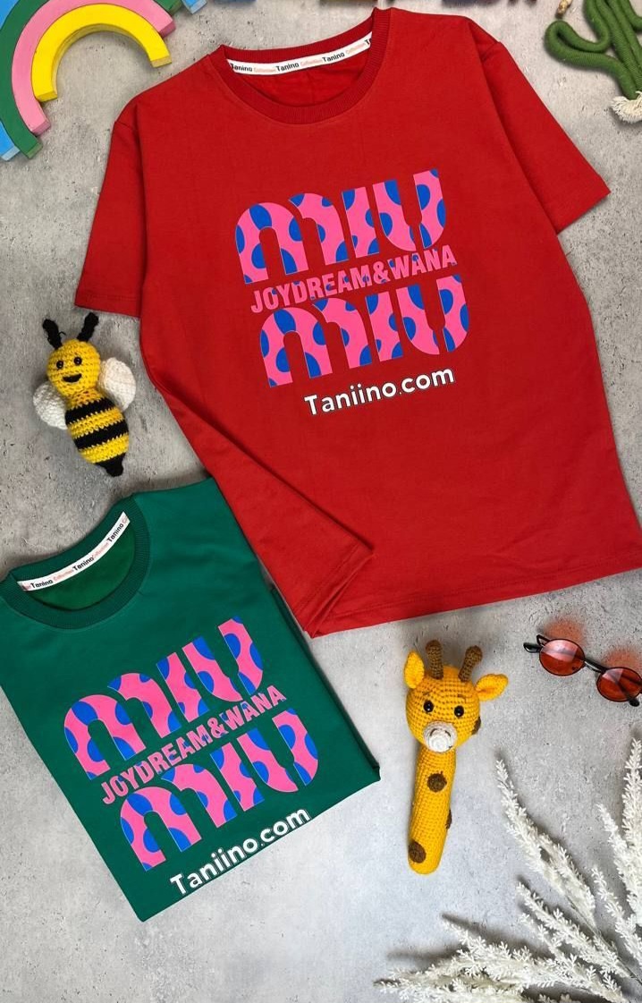 تیشرت تک راحتی اقتصادی پنبه دخترانه مدل miu miu