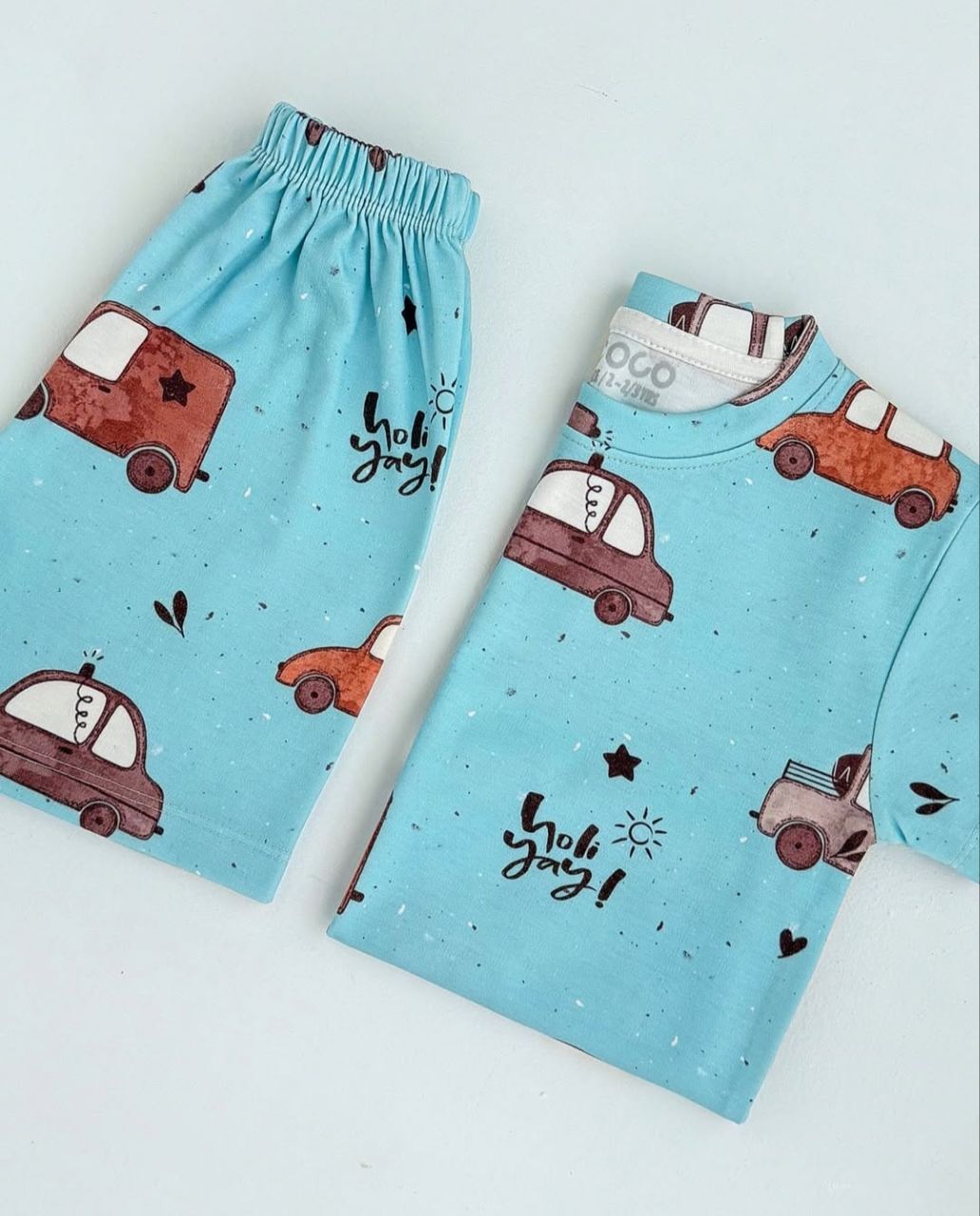 ست تیشرت و شلوارک راحتی پنبه پسرانه مدل ماشین