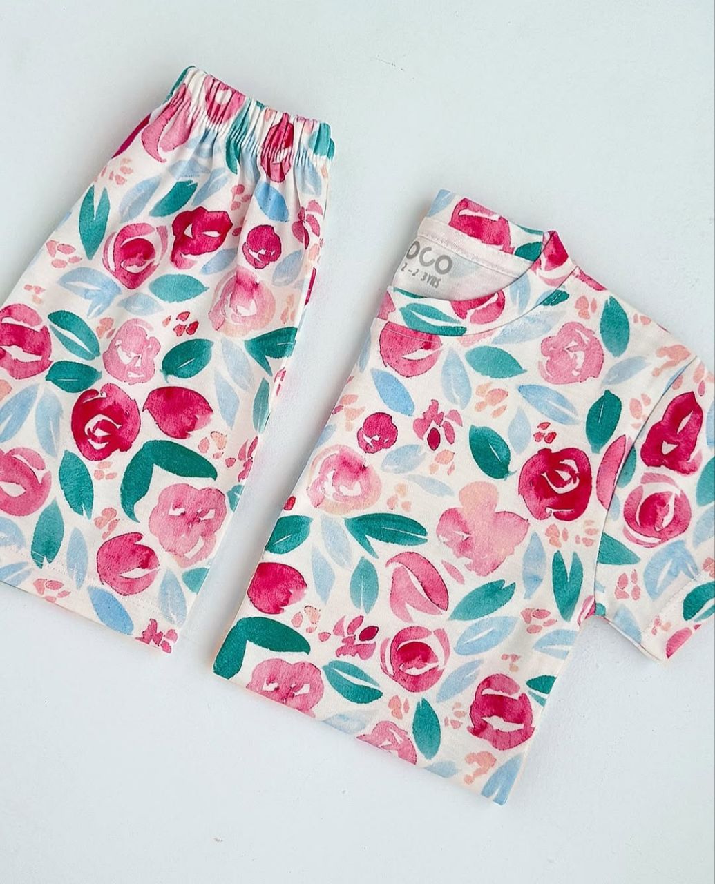 ست تیشرت و شلوارک راحتی پنبه دخترانه مدل گل آبرنگی