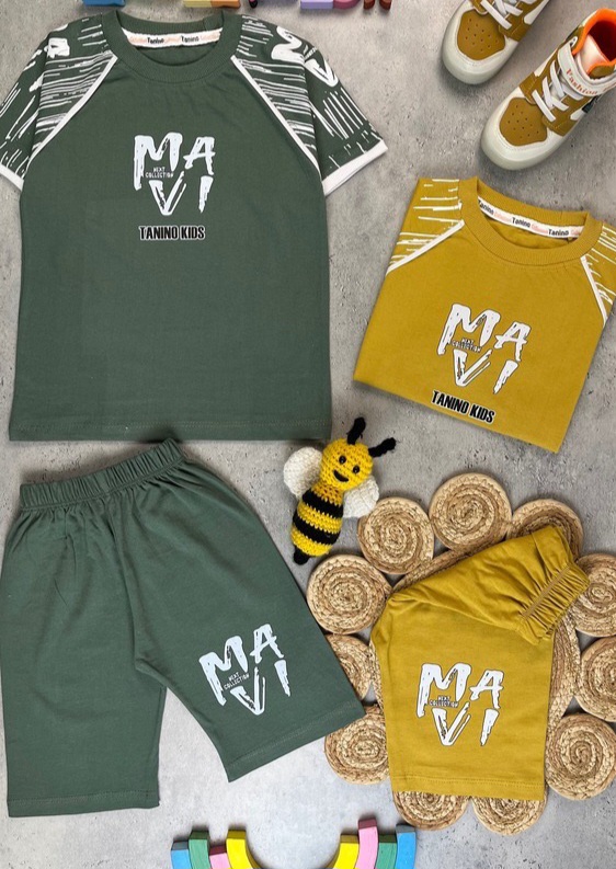 ست تیشرت و شلوارک راحتی پنبه یک رو پسرانه اقتصادی طرح mavi