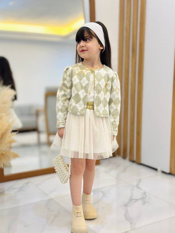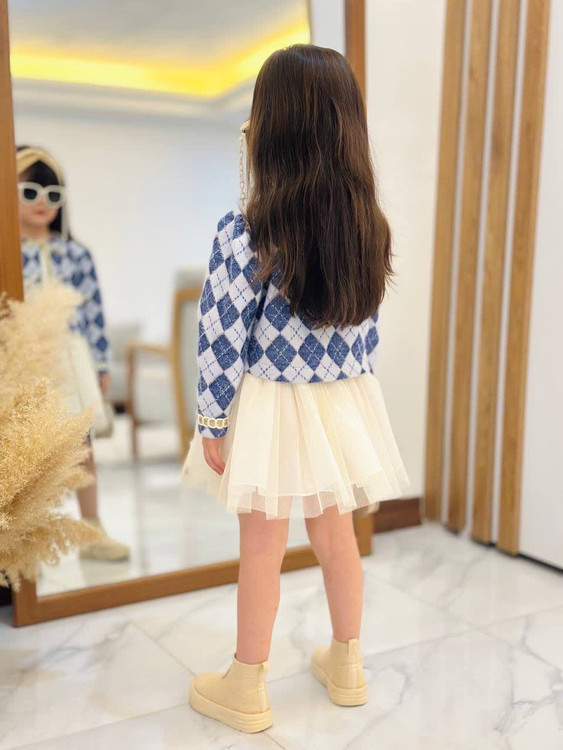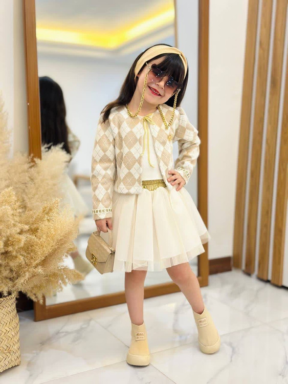 جنس: کت لمزور شاین لمه، تاپ فانریپ صد در صد پنبه، دامن تور کریستال