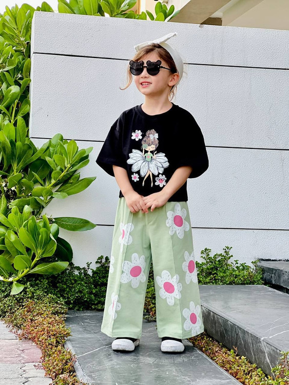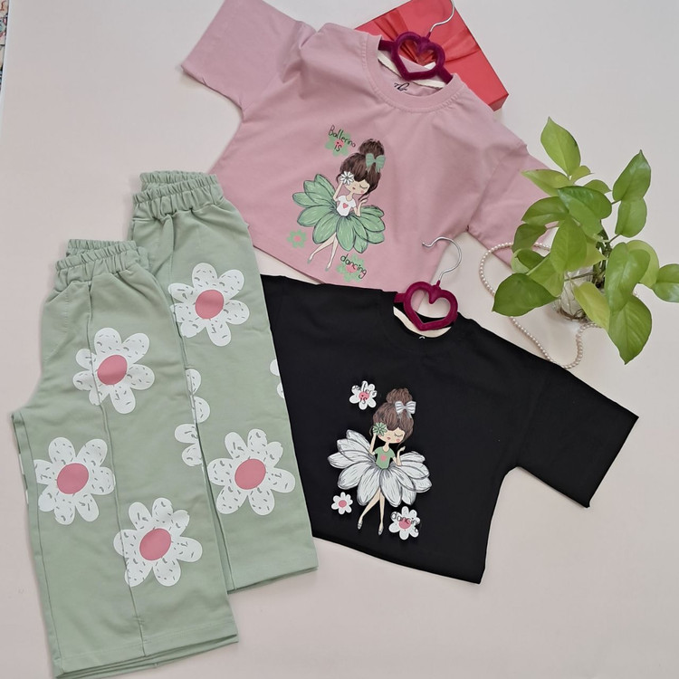 ست کراپ و شلوار پنبه دخترانه مدل بابونه