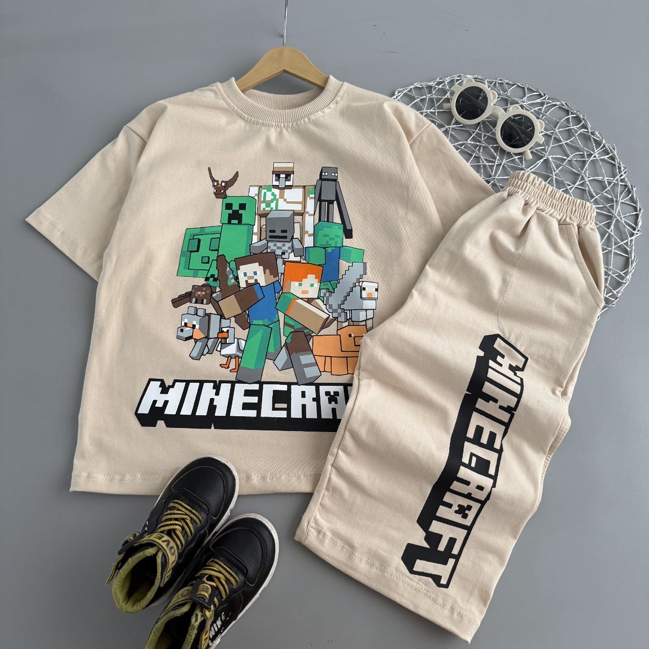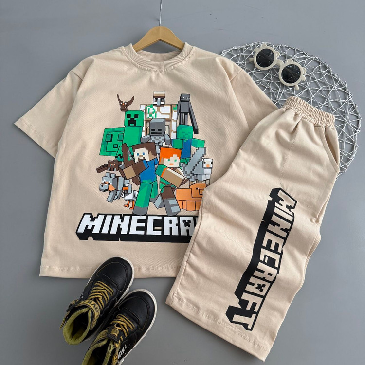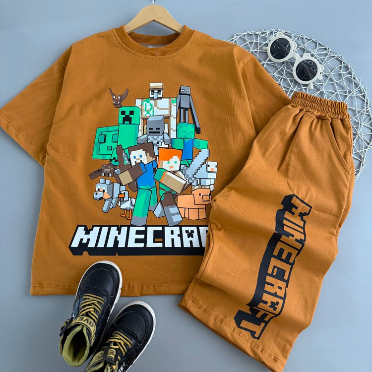 ست تیشرت و شلوارک پنبه لاکرا پسرانه طرح ماینکرافت