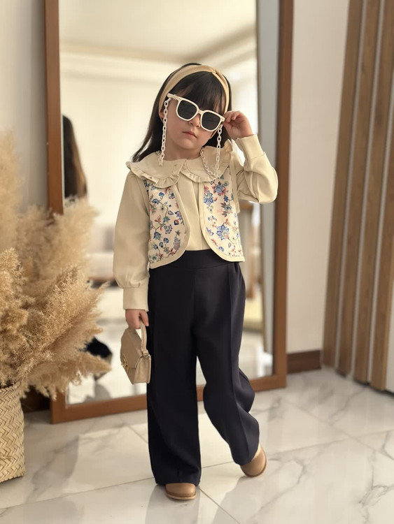 سایز 3: قد شومیز ۴۱، پهنا ۳۵، قد شلوار ۶۸، قد جلیقه ۳۰