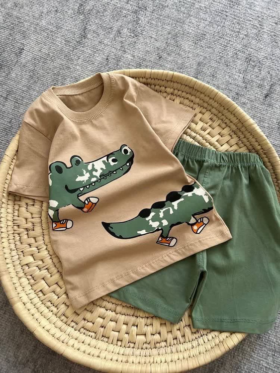 ست تیشرت و شلوارک پنبه لاکرا پسرانه مدل تمساح