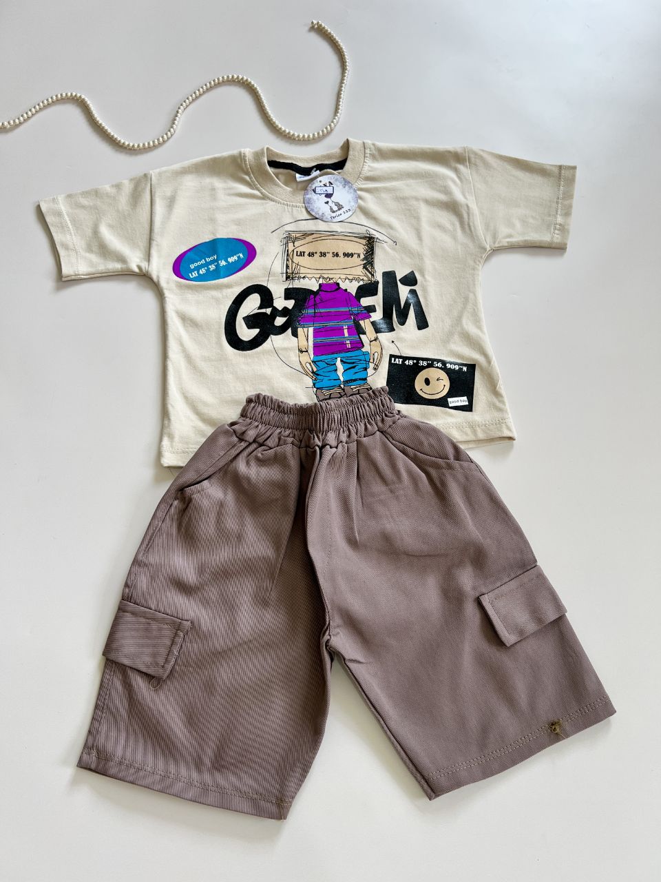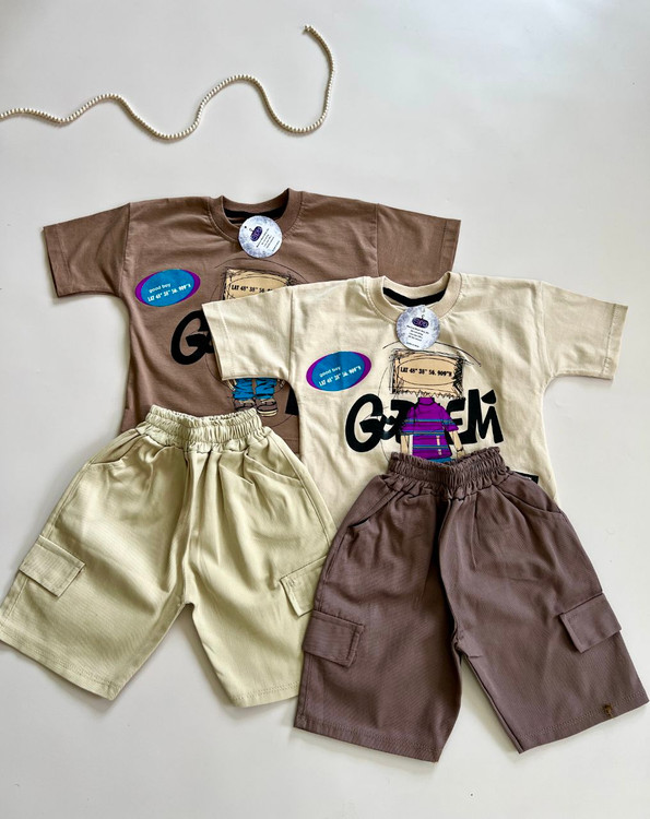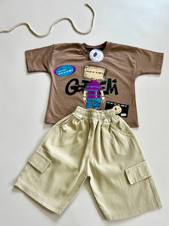 ست تیشرت پنبه یک رو و شلوارک کتان پسرانه مدل آدم اهنی