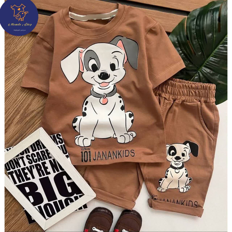ست تیشرت و شلوارک پنبه لاکرا پسرانه مدل سگ نگهبان