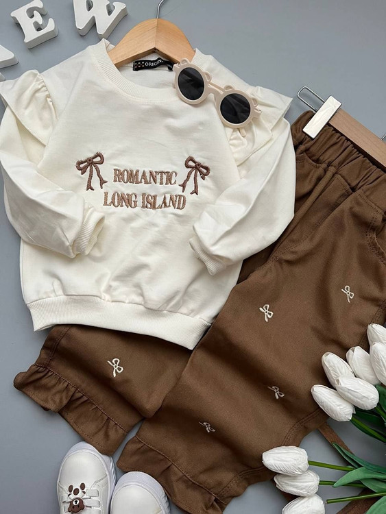ست بلوز پنبه دورس و شلوار کتان دخترانه مدل درسا