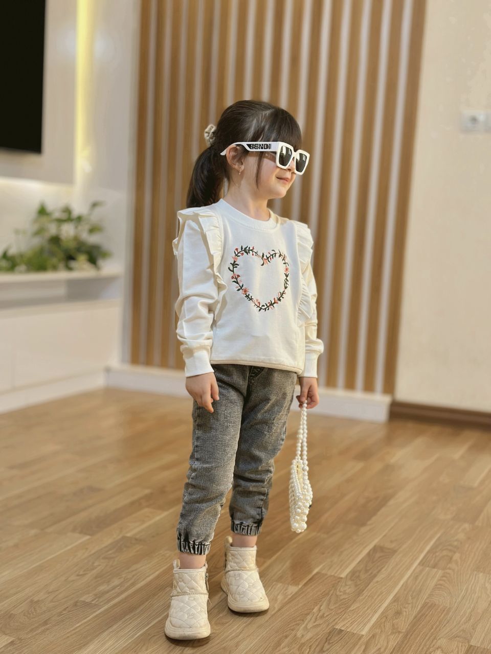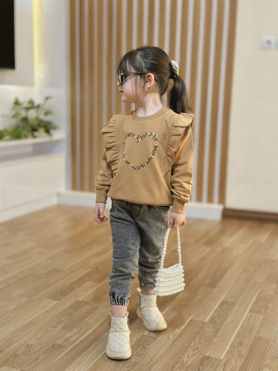 با سرشانههای چیندار و گلدوزی ظریف روی لباس که جلوهای خاص و دخترونه به استایل میده ✨