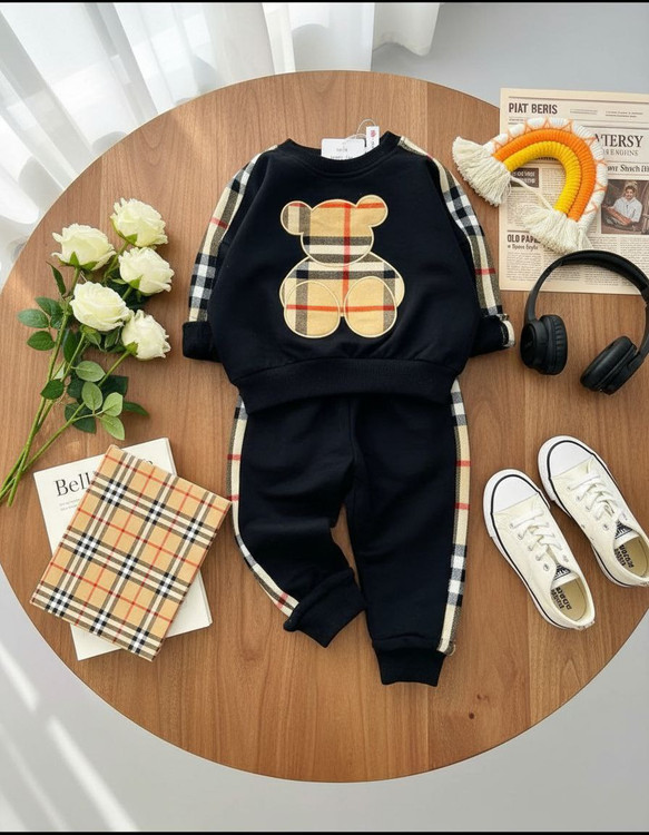 بلوز و شلوار پنبه لاکرا خرسی طرح بربری اسپرت