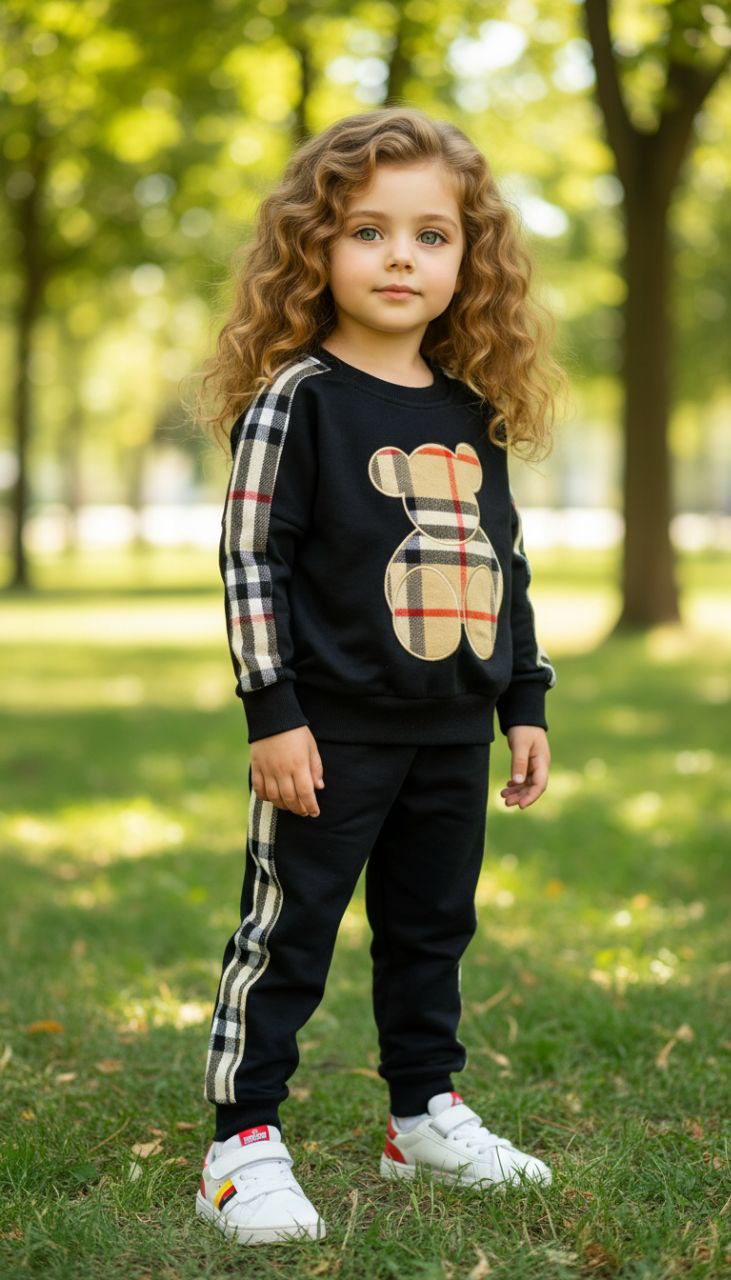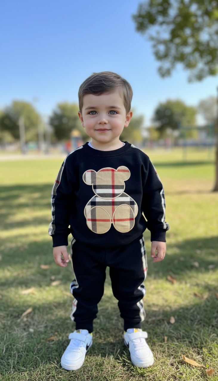 بلوز و شلوار پنبه لاکرا خرسی طرح بربری اسپرت