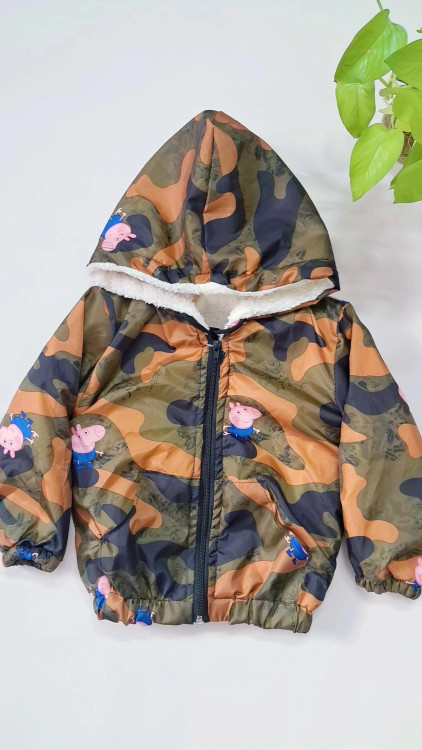 سویشرت کاپشن رویه شمعی داخل خز اسپرت بچگانه طرح ارتشی پپاپیگ