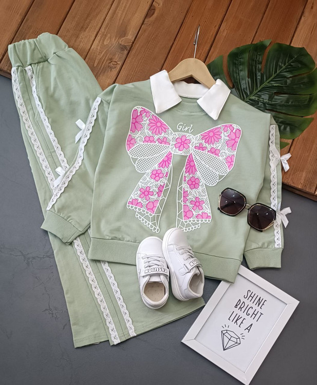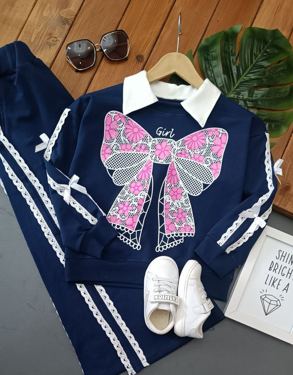ست بلوز و شلوار دورس دونخ لاکرا دخترانه مدل آستین گیپور