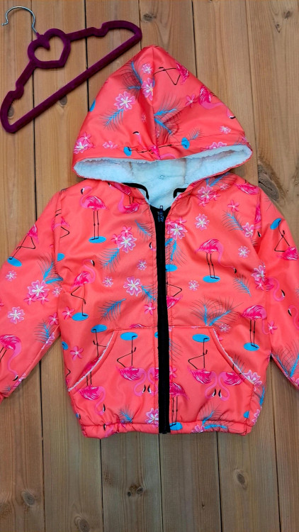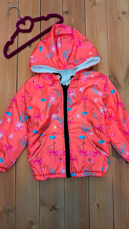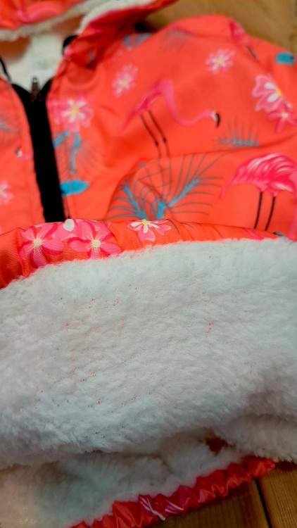 سویشرت کاپشن دخترانه طرح فلامینگو با رویه شمعی ضدآب و داخل خز برهای گرم و نرم، انتخابی کاربردی برای پاییز و زمستان.