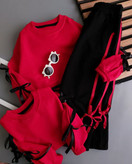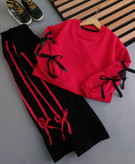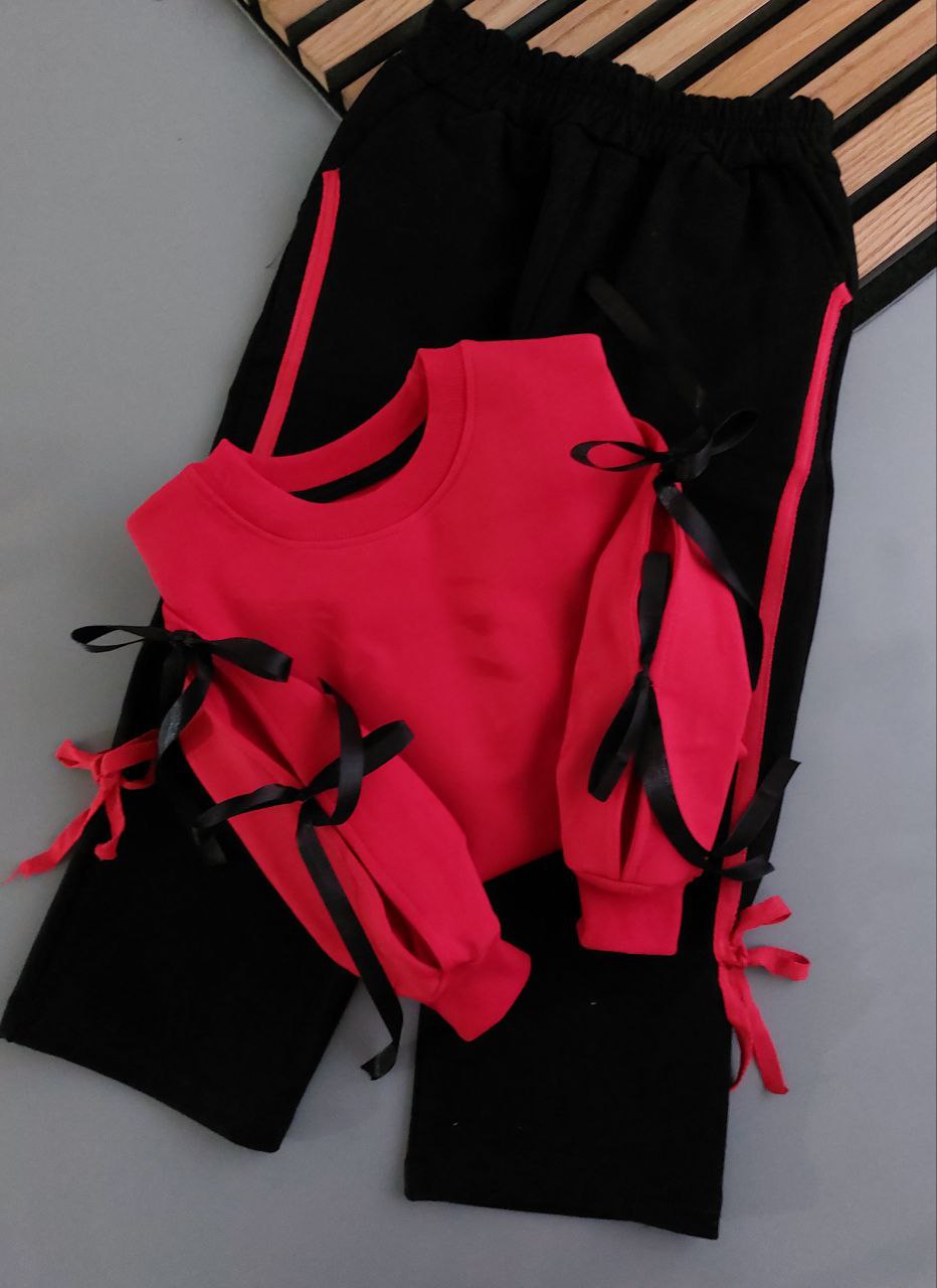 این ست با طراحی شیک و جزئیات جذاب مثل پاپیون روی آستین بلوز و شلوار، جلوهای متفاوت و کودکانه ایجاد میکند.