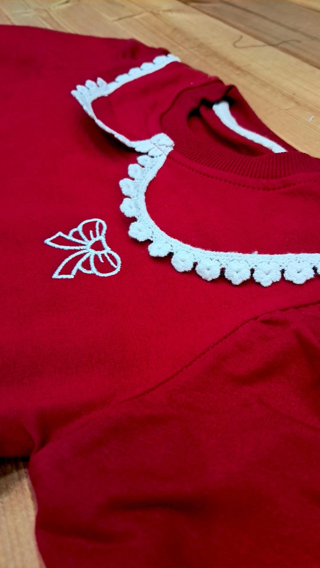 ویژگی : پاپیون گلدوزی روی لباس، دامن به به دورس وصله