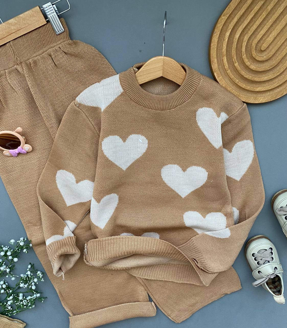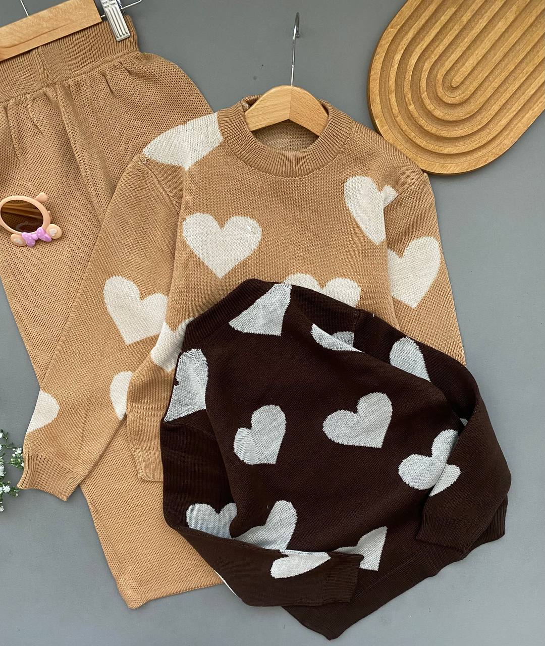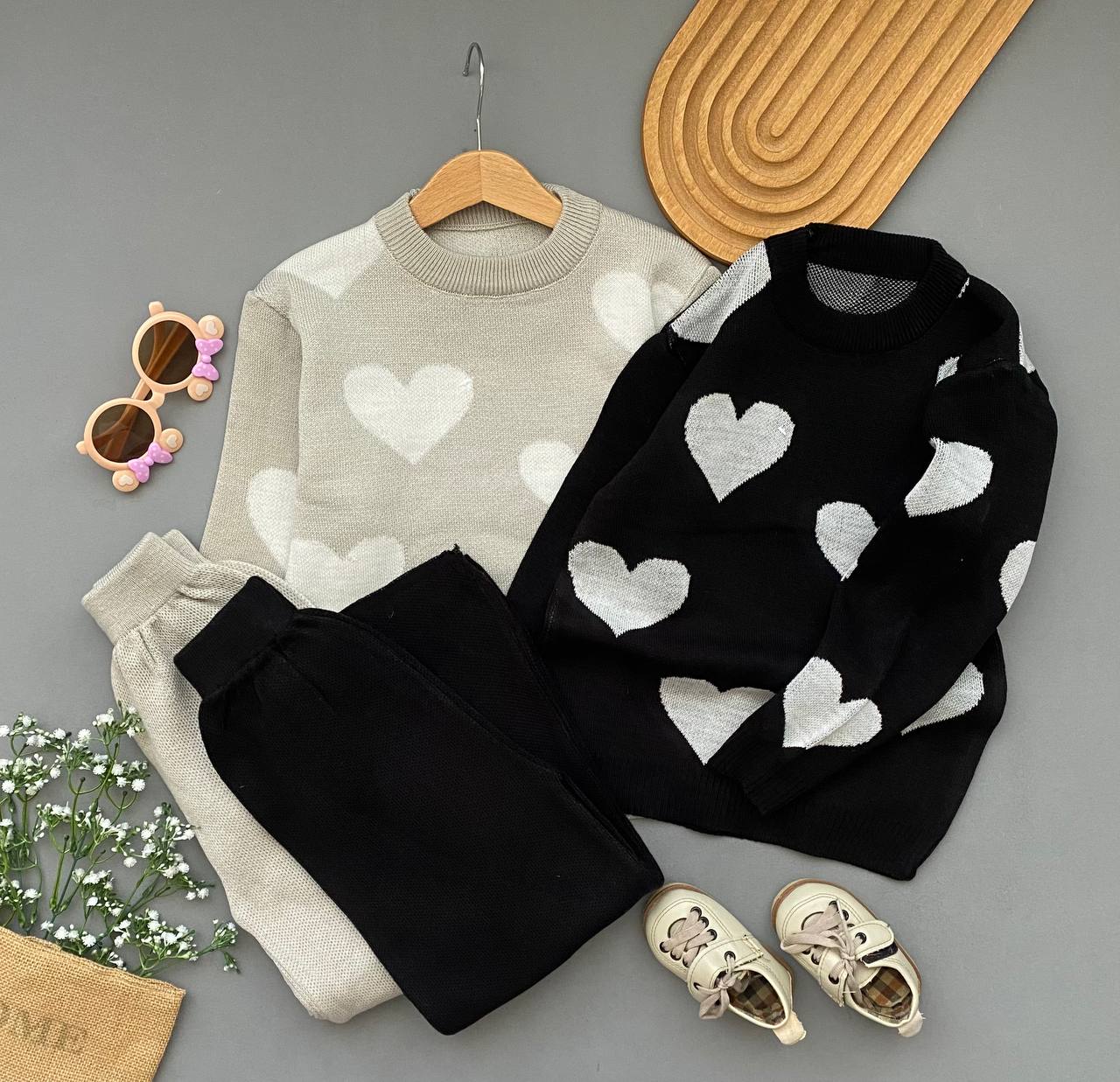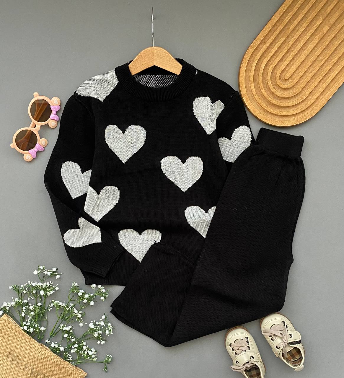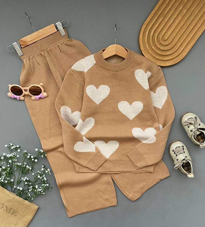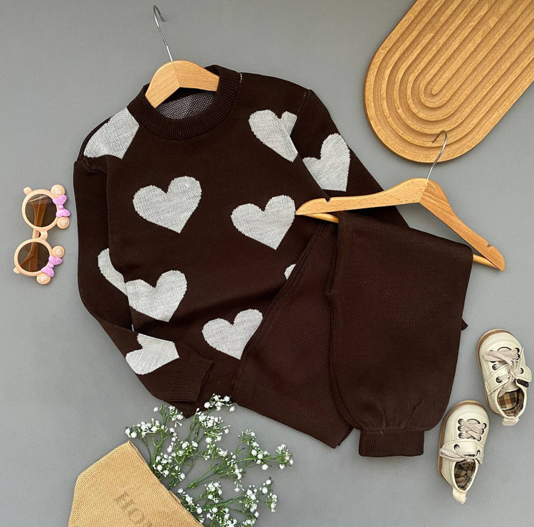 ست بلوز شلوار بافت دخترانه طرح قلبی