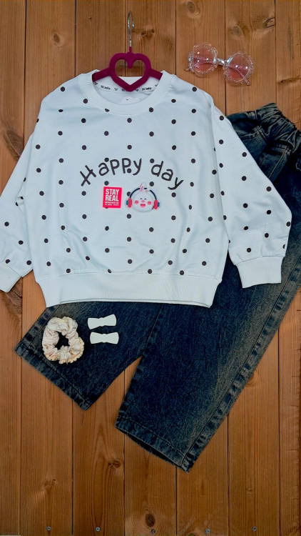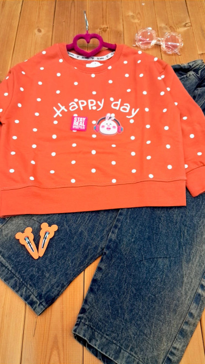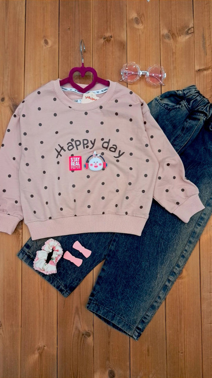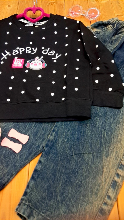 بلوز پنبه و شلوار جین دخترانه مدل خرگوش و هدفون