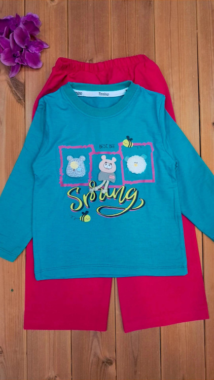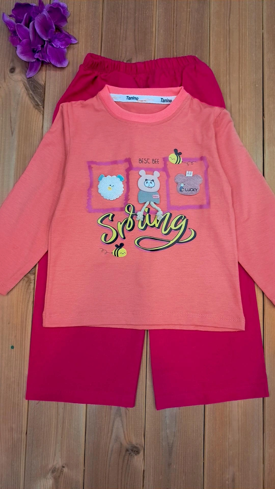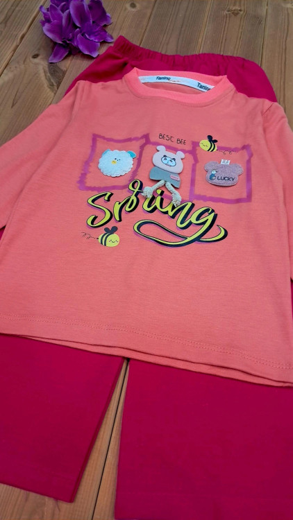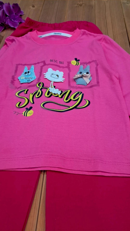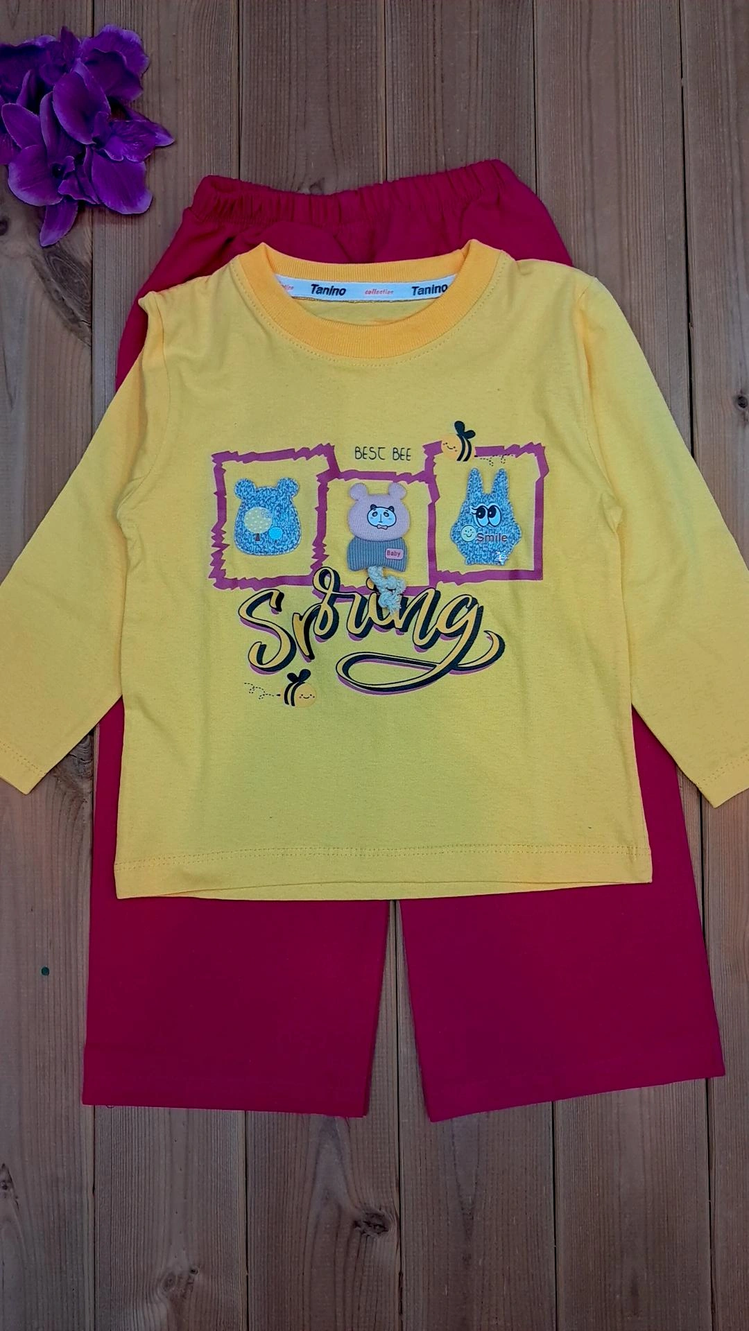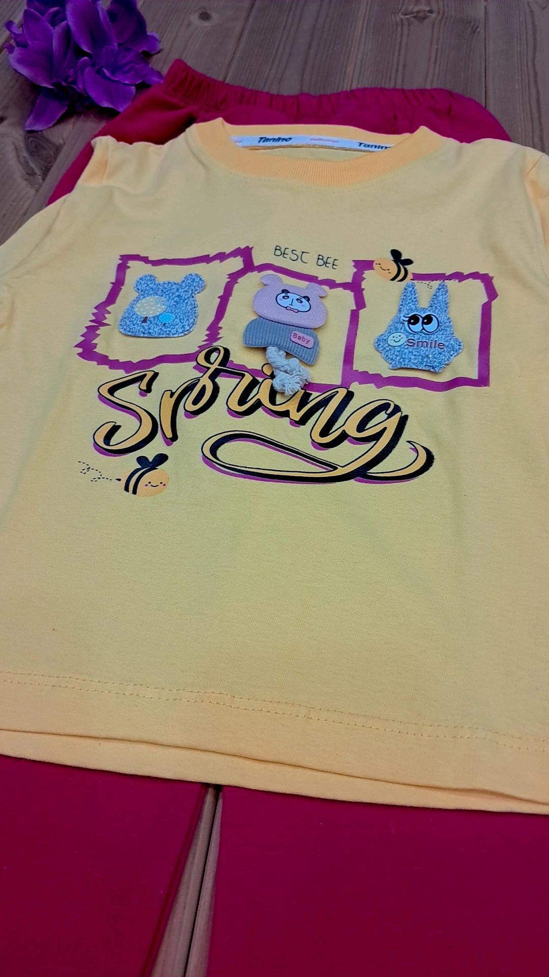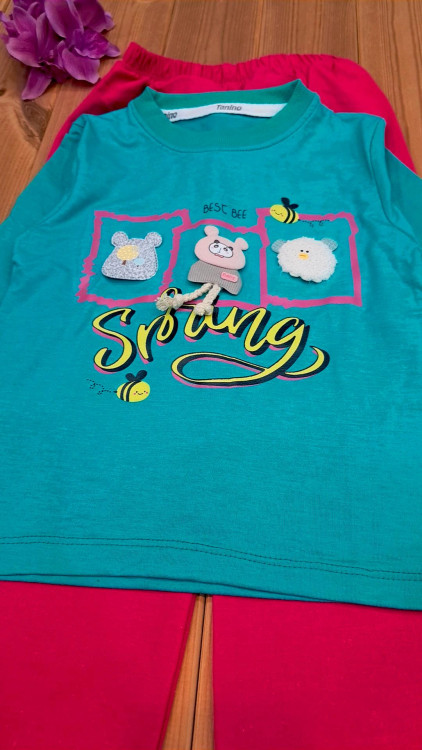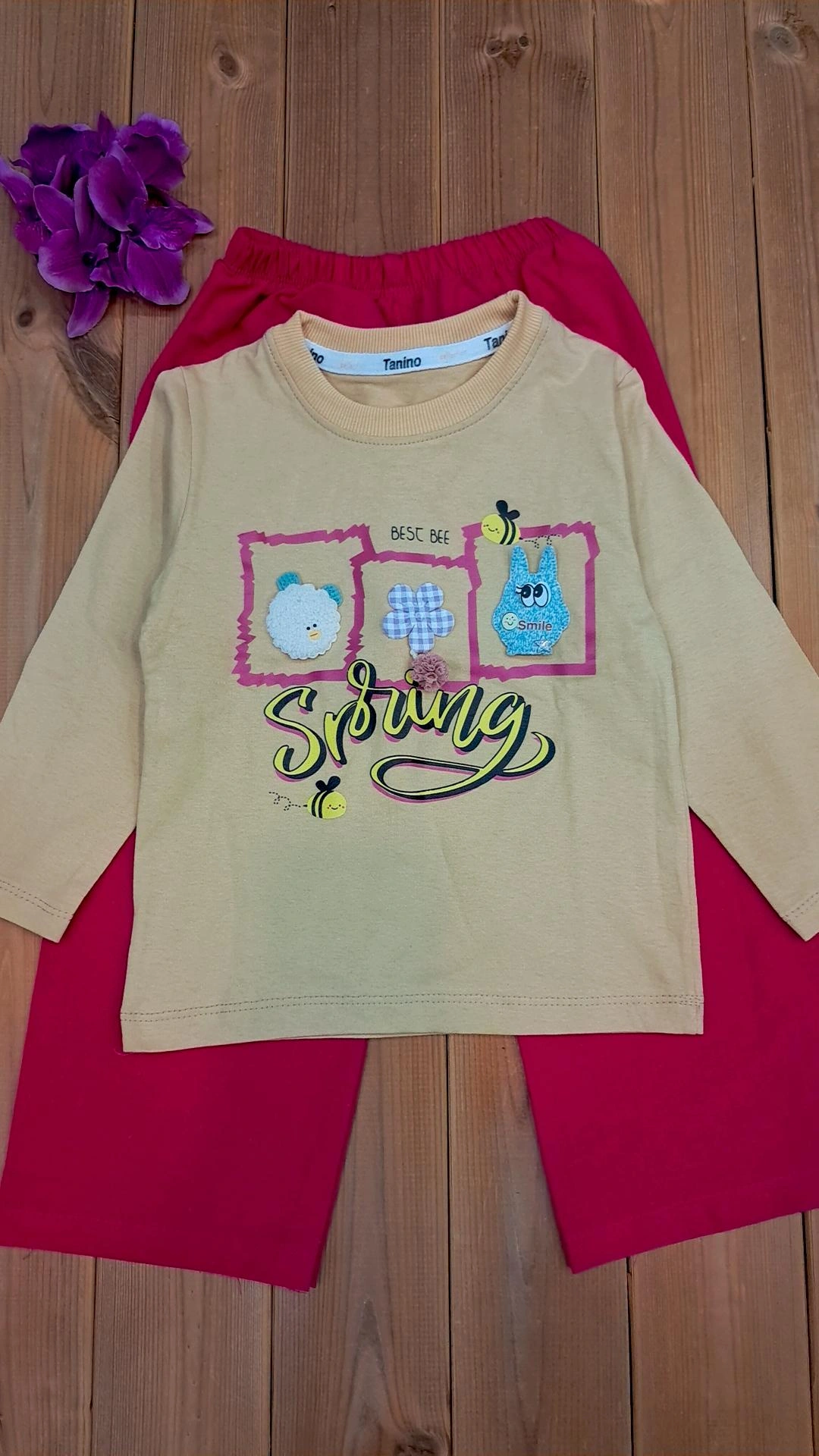 ست بلوز پنبه یک رو و شلوار لینن اقتصادی دخترانه طرح عروسکی